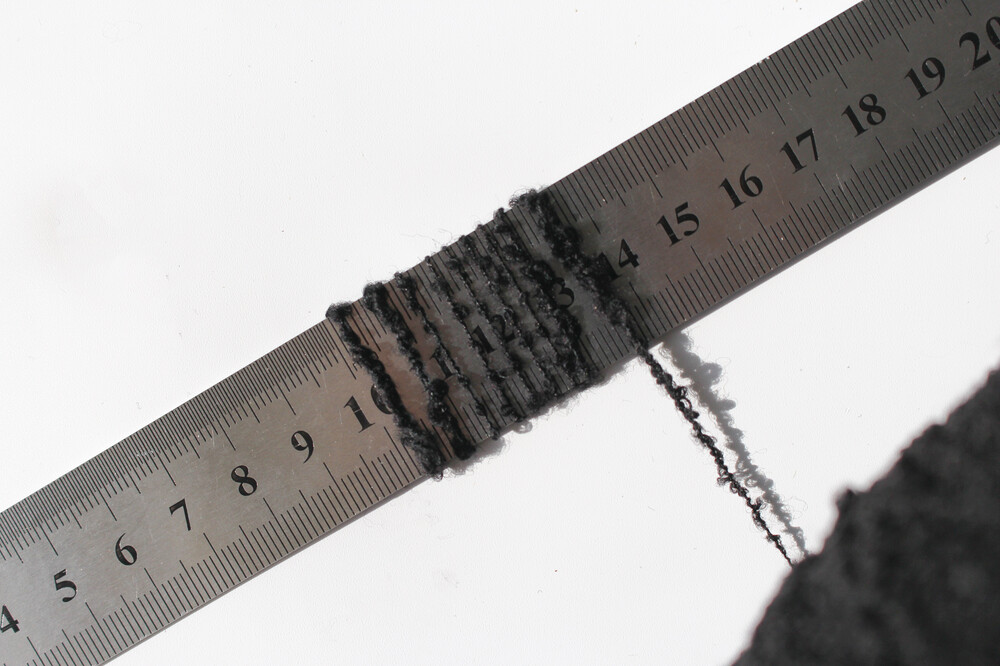 강약이 보이는 원사입니다. 두께가 일정하지 않고, 루프의 형태나 크기도 다양합니다. 경사, 위사 동일하게 사용이 가능합니다.