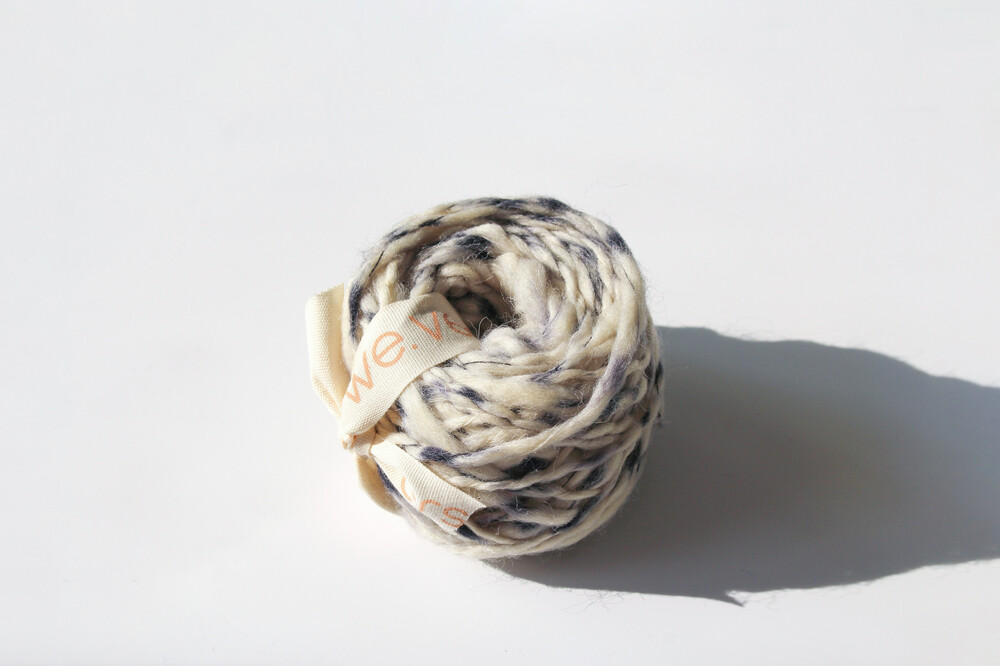 얇은 원사가 두꺼운 원사를 스피닝 하면서 자연스럽게 곡선이 만들어졌습니다. 두께감이 일정하지 않습니다.