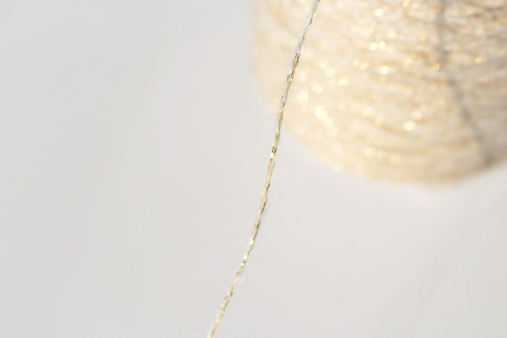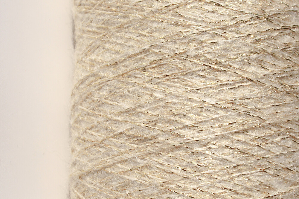 털이 조금씩 올라와 있는 원사와 반짝이는 메탈실이 합사가 되어 새로운 텍스쳐와 느낌을 줍니다.