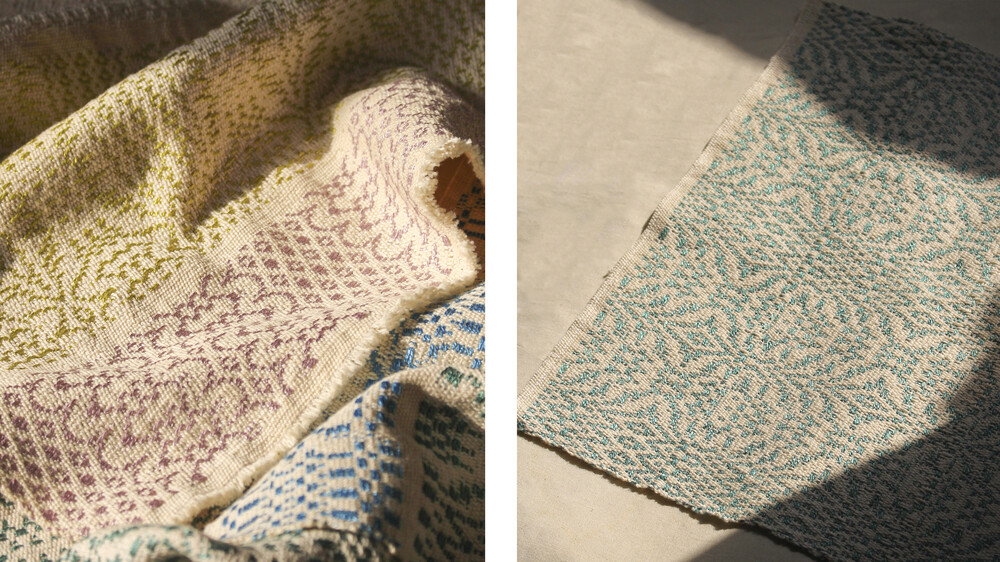 본 실을 경사로 사용하여 만든 정규 과정 5번째 핸드 우븐 작업입니다.
