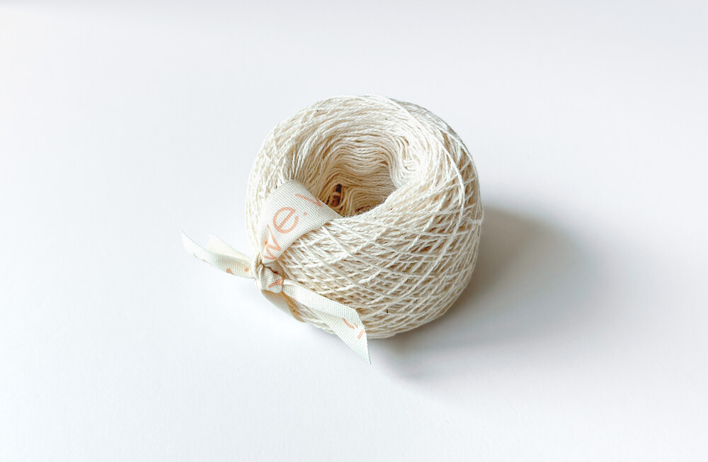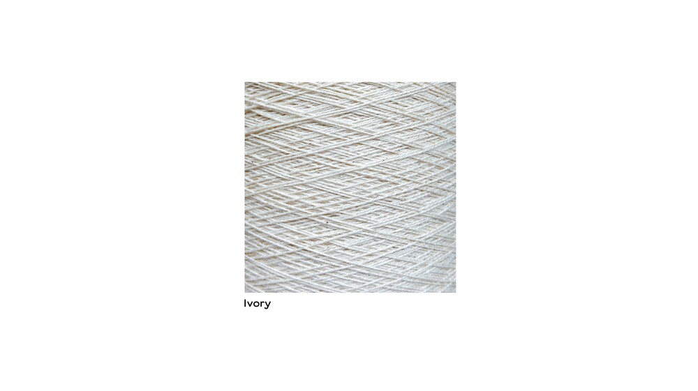 This is a cotton yarn with a slight off-white hue. It is an excellent yarn for use as warp in weaving projects.