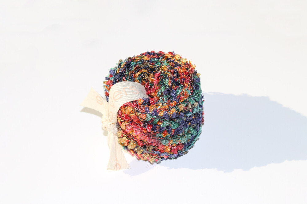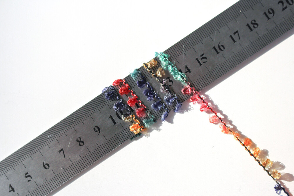 다양한 색상으로 염색된 톡톡 튀어나오는 부분이 작업물 텍스처를 더욱 풍부하게 만들어 주는 원사입니다.