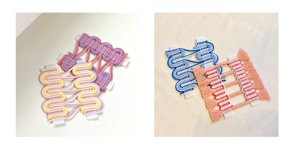Ribbon Tea Coasters workshop은 woven의 구조를 가지고 있지만, 특별한 디자인과 색감이 더해져 다양하게 실생활에서 사용하실 수 있게 디자인되었습니다. Ribbon Workshop과 동일한 형태의 수업으로, 귀여운 리본 티 코스터 2개를 만드실 수 있게 수업이 진행됩니다.