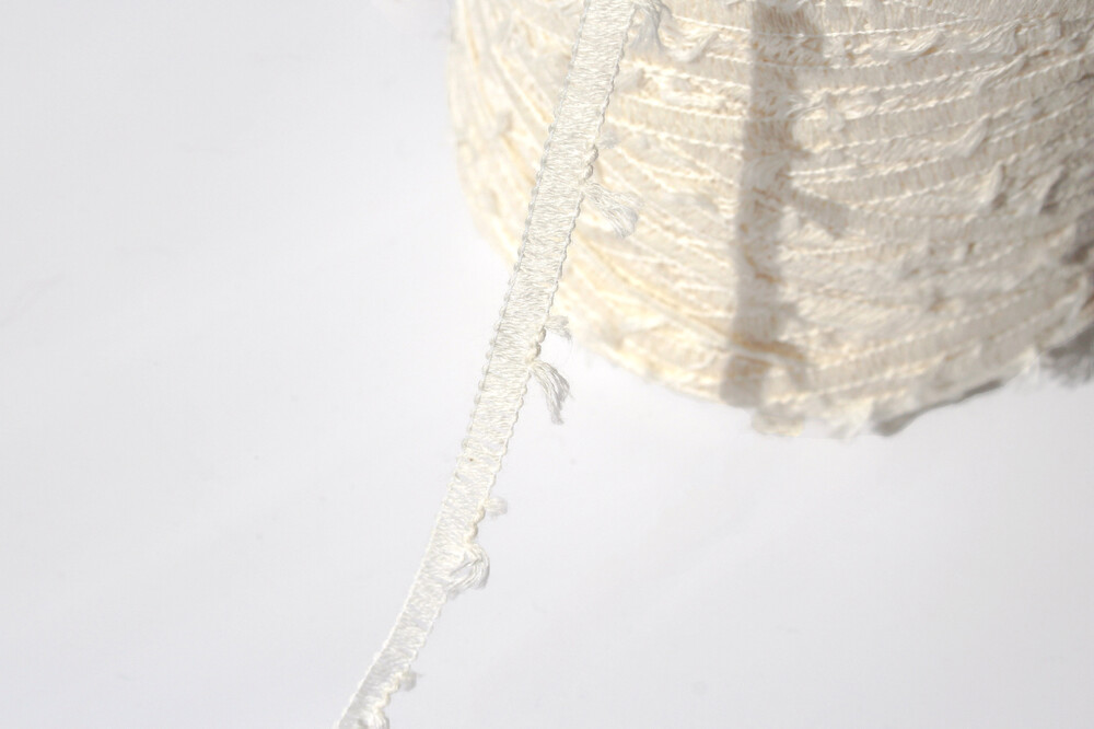 면사로 된 테이프사에 살짝 나오는 원사가 작업물의 촉감을 더욱 풍부하게 만들어 줍니다. 트위드 작업 시 많이 사용하시는 원사입니다.