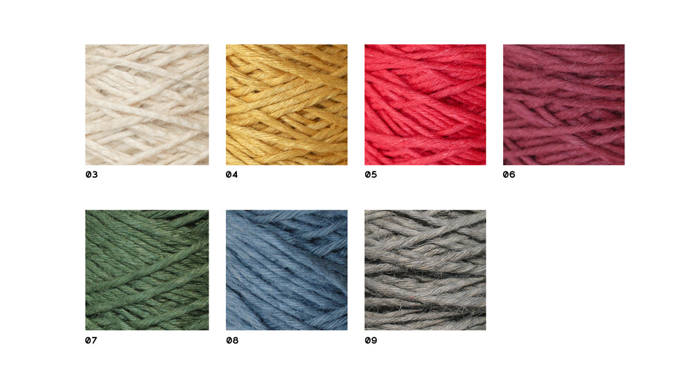 거친 재질의 실로 러그를 뜰 때 적합한 실입니다. 니트와 직조 둘 다 사용 가능합니다. 실의 유연성은 다른 원사들에 비해 떨어집니다.