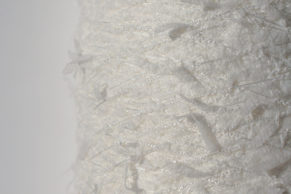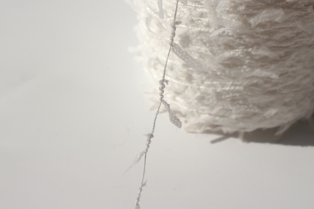 The part that looks like the wings feel like felting fabric, and the thin yarn part is shining.