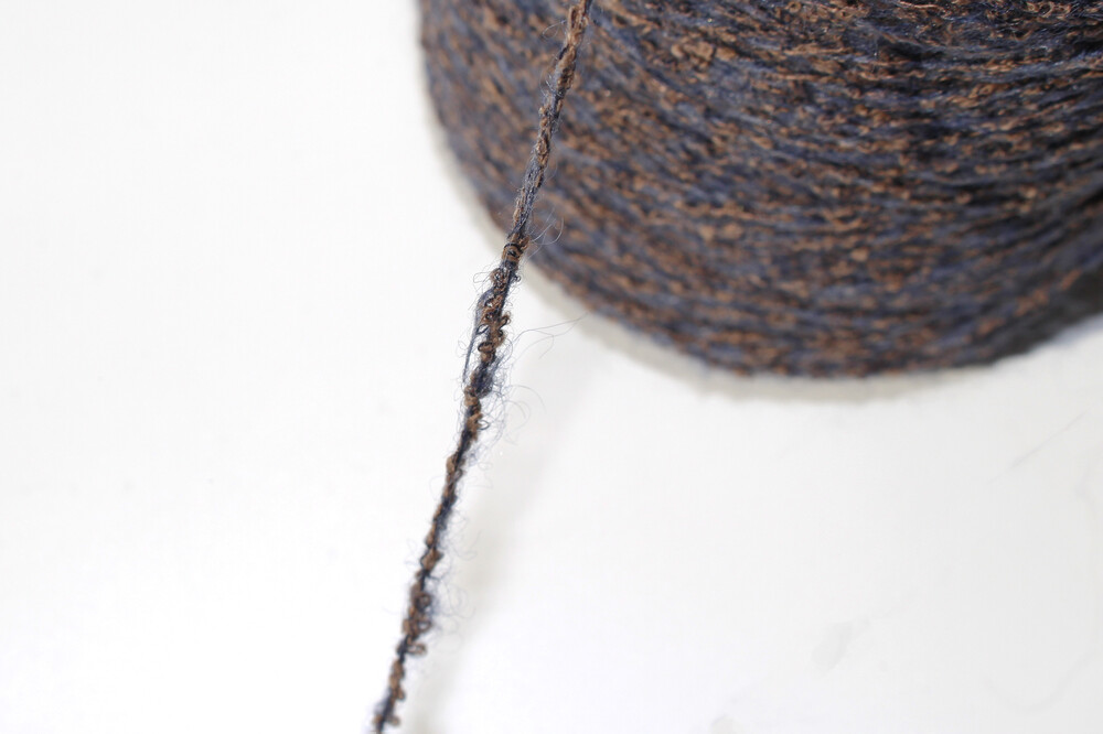 네이비색 베이스에 갈색 푸들의 털같이 복슬복슬 나와있는 원사가 함께 합사 되어있어 독특함을 지닌 원사입니다.